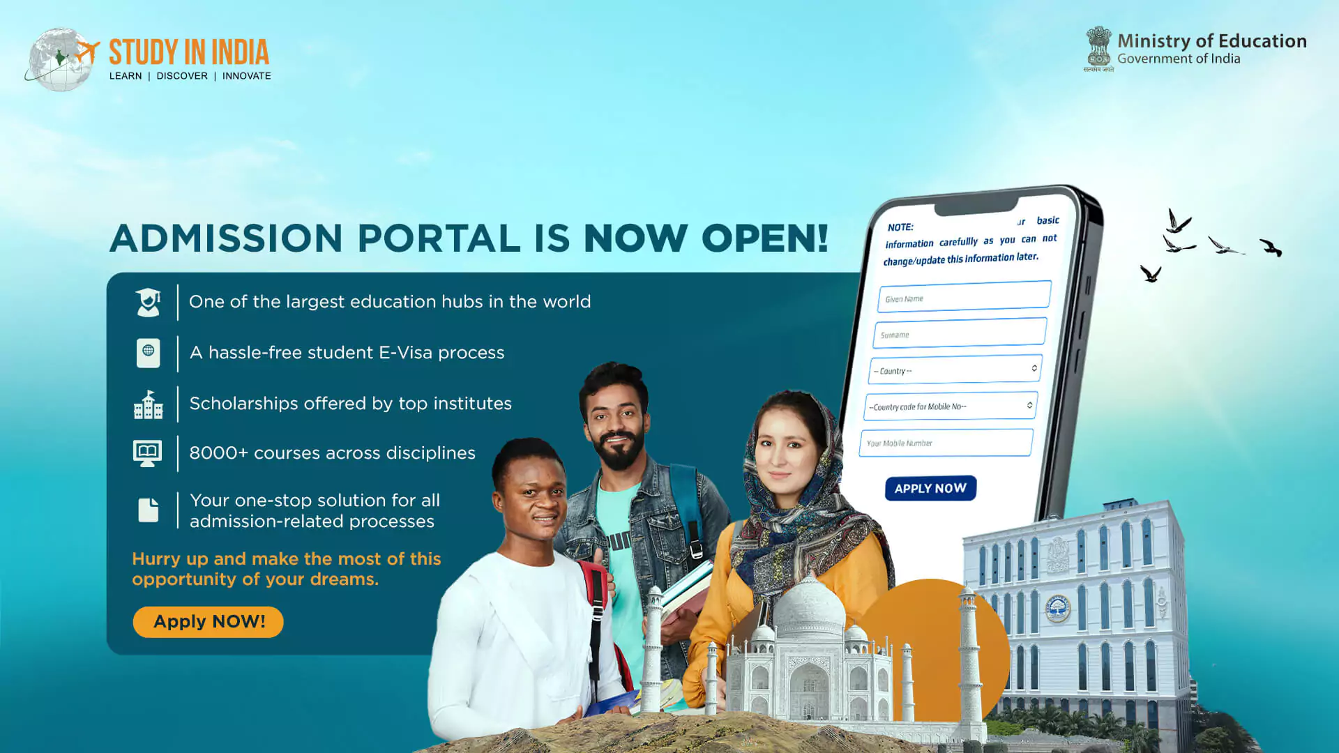 India is a land of discoveries and innovations. Its competitive learning environment encourages students to think out-of-the-box and thrive in their academic journey. With its rich multi-cultural diversity, India offers an immersive experience in both education and everyday life.